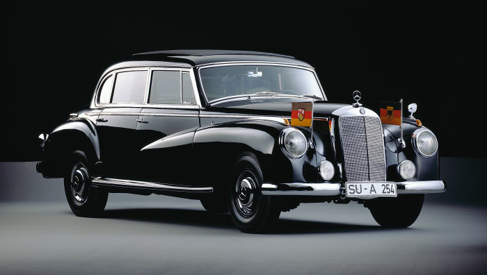 W186 (prabangos limuzinas tomis dienomis) visuomenei buvo pristatytas 1951 m. Jo savybėmis buvo klasikinis išdėstymas, 6 cilindrų (3 litrų) variklis. Šis modelis buvo pagamintas tiek sedano, tiek limuzino kėbulo tipais. Šis automobilis tapo neįtikėtinai populiarus tarp įžymybių, politikų ir verslininkų. Ir kodėl „Adenauers“? Kadangi šis automobilis buvo labai pamėgtas pirmojo Vokietijos kanclerio Konrado Adenauerio. Beje, automobilis turėjo radijo, telefono ir kitų salono naujoves. Interjeras buvo kurimas individualių pirkėjų prašymu. Tai buvo labai populiarus Mercedes-Benz automobilis.